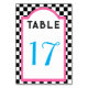 Numéro de table du mariage du diner rétro. Arrière - plan en damier avec des couleurs rose, bleu, noir et blanc. Idéal pour un look vintage des années 1950.