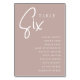 Des cartes numériques simples et chic dans le ton de terre rose taupe et blanc font une déclaration élégante à votre mariage ou événement. Le design comporte "table [nombre]" dans un mélange d'écriture serif classique et manuscrite, avec des noms d'invités individuels en dessous. Le design se répète de part et d'autre. Cartes numérotées individuellement vendues séparément; commandez chaque numéro de table individuellement de notre collection.