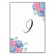 Numéro de table 9 | Complétez votre décoration de table avec ces numéros de table élégants. Ils présentent des bouquets d'hydrangeas rose et bleu à l'aquarelle et une typographie fantaisiste. Ce numéro de table floral est parfait pour les mariages de printemps et d'hiver, les douches de mariée, les fêtes prénatales et bien plus encore. Des articles assortis sont disponibles.
