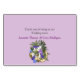 Conception de cadre pailleté doré géométrique avec des bouquets de jacaranda et de lys blancs sur un fond d'arbre de jacaranda texturé pour un mariage printanier ou estival à personnaliser pour chaque invité sur la table