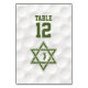 Carte de numéro de table de la réception Bar Mitzvah sur le thème du golf avec un arrière - plan de golf et des accents d'herbe verte. Cette carte de numéro de table de la réception Bar Mitzvah de golf est élégante et moderne. Cette carte de numéro de table Bar Mitzvah sur le thème du golf dispose d'un subtil arrière - plan de golfball avec une étoile juive de David et une icône de golf. Les couleurs de cet élégant design de Bar Mitzvah sur le thème du golf sont blanches et vertes. Si vous envisagez d'héberger un Bar Mitzvah sur le thème du golf sportif, cette élégante carte de numéro de table Bar Mitzvah sur le thème du golf est peut-être le choix parfait.