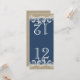 Conception en forme de guirlande de mer bleu marine, changez le numéro pour chaque table et commandez individuellement pour que les numéros de table soient coordonnés avec les invitations. Plier en deux fait une carte de numéro de table de 4" x 4 5/8".