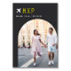 Ajoutez une touche de finition spéciale à vos tables de réception de mariage avec ces cartes de numéro de table photo personnalisées. Nommez chaque table après une destination de voyage mémorable et ajoutez une photo et le nom de la destination à ces cartes de table uniques. Votre photo est alignée en bas à droite dans une disposition voûtée, avec le code de l'aéroport, la destination, les initiales et la date du mariage en haut à gauche, ornée d'une illustration d'icône d'avion.