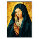 L'arrière - plan claire et sombre contraste avec la tête brune rayonnante de la Vierge et la coiffe blanche qui la recouvre, et ses mains sont délicatement fermées ensemble