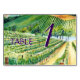 Aquarelle peinte sur les collines verdoyantes et verdoyantes, pleine de vignes, dans un vignoble de campagne. Mots note "Tableau 1" mais peuvent être personnalisés avec vos propres mots et messages. Créez votre propre carte de table unique en son genre en customisant ces cartes de table modèles pour votre mariage, réception ou autre information personnelle sur l'événement.