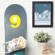 Numéro Neuf. Numéro 9 Numéro individuel comme autocollant. Or et blanc. 8 x 8 pouces