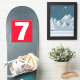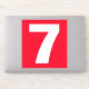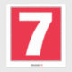 Numéro sept. Numéro 7 Numéro individuel comme autocollant. Rouge et blanc. 8 x 8 pouces