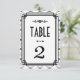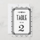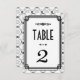 Ces numéros de table présentent une palette de couleurs blanche et noire, un cadre géométrique, des motifs géométriques et d'autres détails stylistiques inspirés de l'Art Déco et des années folles. Vous pouvez personnaliser les champs de texte d'exemple à votre goût.