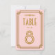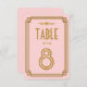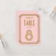 Ces numéros de table présentent une palette de couleurs rose et or, un cadre géométrique et d'autres détails stylistiques tous inspirés de l'Art Déco et des années folles. Vous pouvez personnaliser les champs de texte d'exemple à votre goût.