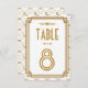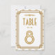 Ces numéros de table présentent une palette de couleurs blanche et or, un cadre géométrique, des motifs géométriques et d'autres détails stylistiques inspirés de l'Art Déco et des années folles. Vous pouvez personnaliser les champs de texte d'exemple à votre goût.