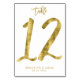 Cartes de numéros de table de mariage - Numéro 12 - avec effet feuille d'or (faux, imprimé en tant qu'image) et texte personnalisable - vous pouvez ajouter le nom de la mariée et du marié et la date du mariage imprimés sur fond blanc
