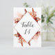 Beauté rustique Fleurs encadrées Aquarelle Conception bohème d'automne ou de fin d'automne avec fleurs peintes à la main boho, plumes et abondance de feuilles et de feuillage colorés orange, rouille, rouge, bordeaux, marsala et pêche. Avec des éléments de ligne dessinés à la main, des polices lettrage main tourbillonnantes et un cadre géométrique en diamant à paillettes de rose gold avec des coups de pinceau Numéros de table pour mariage ou toute autre occasion !
