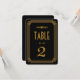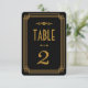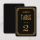 Ces numéros de table présentent une palette de couleurs noire et or, un cadre géométrique et d'autres détails stylistiques inspirés de l'Art Déco et des années folles. Vous pouvez personnaliser les champs de texte d'exemple à votre goût.