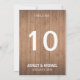 Numéros de table de mariage champêtre chic sur veinage de bois. Également disponible avec des guirlandes lumineuses. Facile à personnaliser avec vos noms et date de l'événement. Changez le numéro pour chaque table. Cela fait partie d'une collection de mariage complète, jetez un œil à notre boutique pour trouver des cartes de menu, des programmes, des pancartes et de la papeterie assortis.