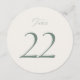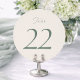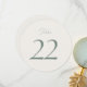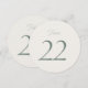 Numéros de table de mariage minimalistes élégants avec un design de numéro vert sauge raffiné sur un fond ivoire doux. Ces panneaux de numéros de table ronds modernes sont parfaits pour guider les invités à leurs places tout en ajoutant une touche stylée à la décoration de votre réception de mariage.