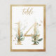Belle carte de numéro de table avec un motif botanique - une illustration aquarelle de feuillage vert et numéros à effet doré. Table 14. Veuillez vérifier tous les numéros disponibles