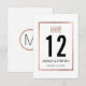 Élégant, chic et moderne, contour en rose gold faux imprimé, carte de table de mariage. Ce design classique et sophistiqué est parfait pour la réception de mariage classe, stylée et tendance. Personnalisez avec des numéros de table personnalisés sur le devant ou ajoutez votre propre message personnel en cliquant sur le bouton "personnaliser". Ajoutez également votre propre monogramme initial personnalisé au dos. Conception d'impression photo personnalisée.