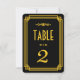 Ces numéros de table présentent une palette de couleurs noire et or, un cadre géométrique et d'autres détails stylistiques, tous inspirés de l'Art déco et des années folles. Vous pouvez personnaliser les champs de texte d'exemple à votre goût.