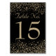 Elégantes cartes de couleur or champagne et de numéro de table noire pour votre mariage élégant- Faux champagne confetti or et points de parties scintillant d'or antique sont dispersés sur les bords supérieur et inférieur. Coordonner les lettres de couleur lisez 'Table No.' avec le nombre customisé contre l'arrière - plan noir pour vraiment faire pop les points. Identique de l'autre côté. Customisez chaque numéro de table séparément et ajoutez-le à votre panier Zazzle.