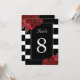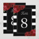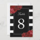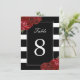 Numéros de table rayures noires et blanches avec roses rouges - Créé par Colourful Designs Inc. Copyright 2013-2016. Tous les textes peuvent être modifiés.