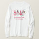Vier skurrile, festliche Gnome hängen zusammen und genießen die Schneeflocken. Im Text steht "Chillin' mit meinen Gnomen".