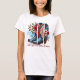 Dieser weiße T - Shirt zeichnet sich durch eine stilvolle Abbildung von Cowboystiefeln aus, die mit den amerikanischen Fahnen geschmückt sind und von bunten Blume umgeben sind. Der Text "Just a girl that Liebe America" ist in einem charmanten Drehbuch unter den Stiefeln geschrieben, das patriotische Gefühle mit einer femininen Touch ausdrückt.