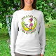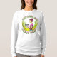 Shirt für Frauen. Nur ein Mädchen, das gerne Zitat wirft. Hübsche Dame mit unordentlichem Bun, die im Wald eine Disc Golf wirft.