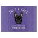 Niedlicher französischer Bulldogge mit Text, der lautet: "Nur ein Mädchen, das ihr Französisch Liebe"