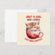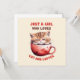 Feiern Sie Ihre Liebe für Katzen und Kaffee mit unserer bezaubernden Grußkarte "Just a Girl Who Liebe Cats and Coffee"! Dieses hübsche Kunstwerk mit einem niedlichen Kätzchen, das aus einer roten Kaffeetasse herausguckt, ist für Katzenliebhaber und Kaffeefreunde gleichermaßen geeignet. Ein wunderbares Geschenk für sich selbst oder für den besonderen, der süße Katzen und gemütliche Kaffeemomente liebt.