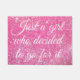 NUR EIN MÄDCHEN, DAS ENTSCHLOSSEN, FÜR IHN ZU GEHEN funkeln lila rosa Glitzer Türmatte mit eleganten weißen Schriften.