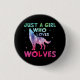 Nur ein Mädchen, das Wölfe Lieben Wasserfarbe Button