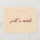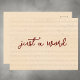Postcard steht auf bordeauxrotem Vellum-Hintergrund voll Vintag aussehender englischer Wörter.