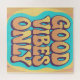 Lustiger Zitat-Text im Groovy-70er-Jahre-Stil-Typografie mit dem Text 'Nur gute Schwingungen'-Design.