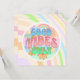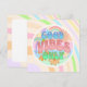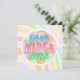 Niedliche Retro-Stil sanfte Farben lila, blau, rosa und grün Vintag Good Vibes Only Zitat. Blume, Regenbogen, Pilze und andere lustige Hippie-Grafiken im Stil der 70er Jahre. Leere Karte.