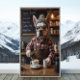 Dieses Plakat zeigt einen französischen Bulldog in rot-weiß Flanell, hinter einem undurchsichtigen Café-Tresen mit Latte Art in den Werken. Sein intensiver Bistakurs, seine stilvollen Gläser und seine fröhlichen Pfotenbewegungen deuten darauf hin, dass er sich ein wenig zu viel von seiner eigenen Braue gesampelt hat. Mit humorvollen Getränkenamen wie "Furpress" auf der Speisekarte bringt dieses spielerische Kunstwerk Coffee Noks, Cafés oder Hunde-Zuhause-Dekor zum persönlichen Ambiente.
