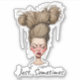 Nur, manchmal fühlen Sie sich frustriert von dieser stressigen Welt. Eine lustige unordentliche Bun-Frau mit traurig gestresstem, traurigem Gesicht.