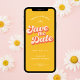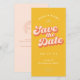 Eine Hochzeit speichern Sie das Datum mit einem benutzerdefinierten Foto und pfirsichfarbenen Retro-Stil Typografie ist eine einzigartige und stilvolle Art, Ihre bevorstehenden Nuptials zu verkünden, um Ihre Freunde und Familie. Der Vintage Pfirsichstil-Schriftart fügt eine Touch von Retro und Whimsy hinzu. Dieses Design wird sicher beeindrucken und alle begeistern für Ihren großen Tag.