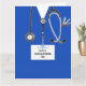 Personalisierte Abschluss-Karten der Krankenpflegerschule mit Krankenhausaufnahmen, einem Stethoskop und einer Schweizer Taschenmesser-Illustration. Bearbeiten Sie Text, um den Namen der Krankenschwester hinzuzufügen.