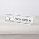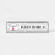Auf dem eleganten Typenschild der Krankenschwester befindet sich eine weiße Krankenschwester-Kappe, auf der rechts Ihr Name steht, um sich in einem modernen, weißen Schriftart auf silberfarbenem Hintergrund zu personalisieren. Entworfen von dem weltbekannten Künstler ©Tim Coffey.