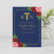 Nurse graduation with pink and red roses against a navy blue background. Gold caduceus and script typography. Photo template via Pixabay licensed under CC0 and must be replaced with your own photo.