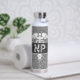 She will love this Nurse Practitioner Graduation Silver Personalized Water Bottle. It is designed with silver faux glitter background and grey horizontal stripe on the center. The text is "NP" in bold white line lettering. Personalized with name in black trendy hand lettered script on the front center with a white medical caduceus symbol. This modern stylish water bottle makes a great nurse NP graduation gift!