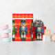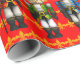 Linien des bunten Nussknacker-März über Reihen der GoldLilie auf diesem Feiertagsgeschenkpapier. Hier dargestellt mit einem roten Hintergrund, können Sie jede mögliche Farbe wählen, die Sie die Anwendung "besonders anfertigen es" Knopf mögen.