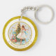 This double-sided, round keychain features a beautiful watercolor-style illustration of a ballerina, like the Sugar Plum Fairy, dancing gracefully by a Christmas tree laden with gifts. The vibrant design is encircled by a stylish gold foil effect border.