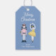 Dieses Nusscracker Weihnachtsgeschenk-Tag zeigt eine niedliche Abbildung eines Nussknackers und tanzende Ballerina über einen blauen Hintergrund mit dem Sprichwort: Frohe Weihnachten. Personalisieren Sie es: Fügen Sie Ihren Kinder Namen, oder ändern Sie Gruß nach Ihren Wünschen! Ein niedlicher, farbenfroher Geschenktag für kleine Mädchen und Ballettliebhaber!