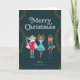 Niedliche Weihnachtsgrüßkarte mit einer handgezeichneten Abbildung von Katze, Hund und Mäusen in Nutcracker Ballettfiguren.