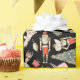 Nutcracker Ballet Weihnachtsgeschenk-Wrap bietet Nutcracker Ballet Charaktere und Symbole auf schwarzem Hintergrund.