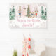 Celebrate in style with this Nutcracker Sugar Plum Fairy birthday party banner. Featuring pink ballet details, festive nutcracker illustrations, and a magical winter wonderland design, it’s perfect for decorating your Christmas or Land of Sweets birthday celebration. Personalize with your child’s name and age.