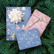 Dieses Nutcracker Weihnachtsverpackungspapier weist 3 verschiedene, skurrile Muster in einem rosa, gelben und blauen Farbthema auf. Blatt 1: Ein Nusscracker und tanzendes Ballerina Muster; Blatt 2: Süßkarren und Schneeflocken; Blatt 3: Fa la Muster in Blau und Weiß. Ein einzigartiges und bezauberndes Geschenk für den Urlaub!