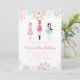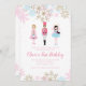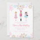 Invitation à l'anniversaire de Nutcracker Ballet Witner avec des flocons d'or, rose et bleu.