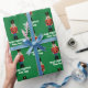 Nutcracker Illustration Weihnachtsverpackung Papier. Niedliches Holiday Geschenkverpackungsdesign für Freunde und Familie. Anpassbare grüne Hintergrundfarbe. Erhältlich in matt und glänzend lackiert. Funny Spielzeugsoldat Muster Design. Personalisieren Sie mit Ihrem eigenen Urlaubsgruß und Namen.
